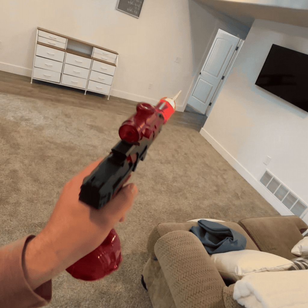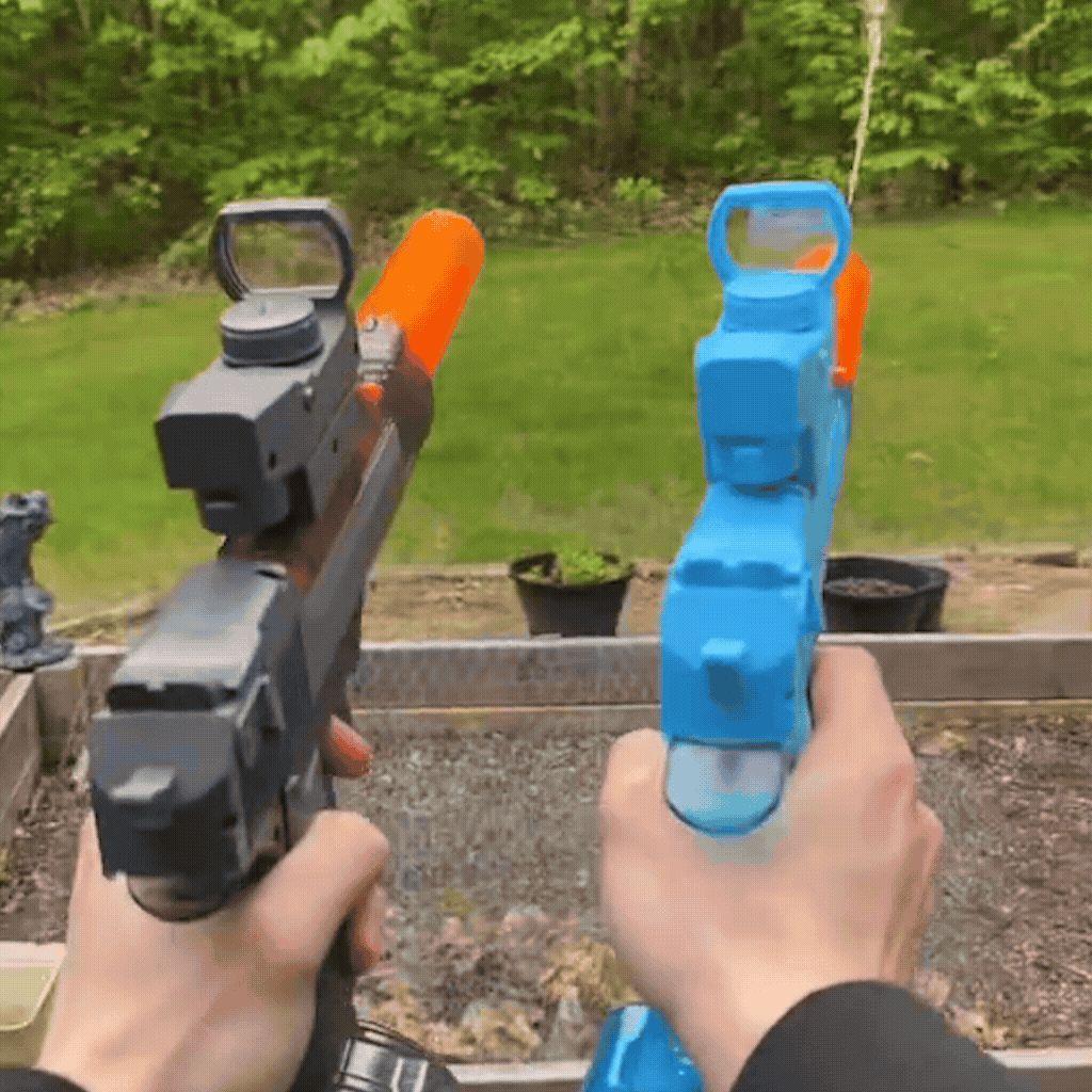 The MK.2 Drip Striker features a manual pump that fires pressurized water streams up to 40 ft. It has a quick-swap, large-capacity tank, a built-in rechargeable battery powered via USB, and an integrated tactical sight with a light-up silencer for pinpoint aiming. Crafted from reinforced plastics with textured grips, it’s leak-proof until the trigger is pressed for all-day water battles.